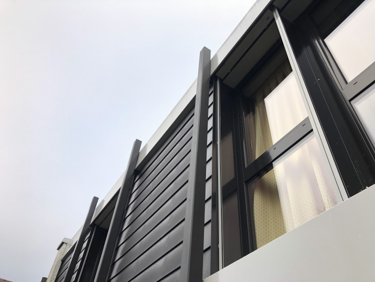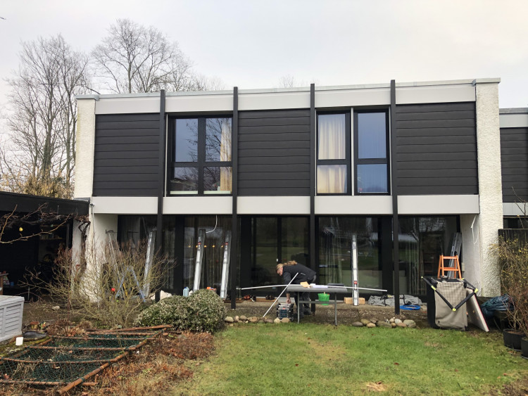 Komplettersatz der bestehenden Holzfassade durch Eternit und Alu aussen.